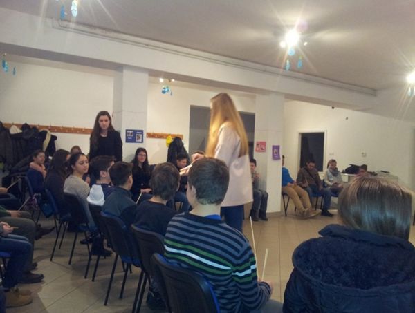 A lányok története után Tamás néhány „játékba” vont be bennünket. Először mindegyikünknek kiosztottak egy hurkapálcát, amit el kellett törnünk. Ezt könnyedén megtettük, ki bátrabban, ki félénkebben. Ezután ismét kaptunk egy hurkapálcát, amit Tamásnak kellett kivinnünk. Egyik társunknak kellett a kötegbe fogott pálcákat megpróbálni eltörni. Sikerült ugyan, de jóval nehezebben, mint az egyes pálcát. Ha nem egymagunkban, hanem közösségben cselekszünk, imádkozunk, akkor sokkal erősebbek és kitartóbbak leszünk.
