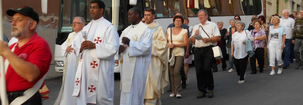 Fél hétkor gyertyás körmenet indult plébániánk papjai és vendég atyák vezetésével a templomtól a Szentkútra. A Mária-szobor előtt egy imára, köszöntésre megállt a menet, mielőtt a szentmise helyszínére, a színpadhoz érkezett. A kellemes idő, a szépséges tölgyerdő, a feldíszített színpad, Perger Gyula atya emelkedett hangvételű, ünnepi prédikációja, a környékbeli és a verbita atyák jelenléte mind hozzájárultak ahhoz, hogy a zarándokok sokasága áhítatos csendben vett részt a szentmisén. Sokan érezhették az ünnepnek, az együttlétnek, a Szűzanya közelségének az erejét, ami felemeli a lelket, néhány órára kiszakítja a hétköznapi gondokból, új erővel és frissességgel tölti el.
