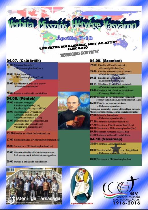 2016. április 7-étől 10-éig Missziós Hétvégét tartunk a Vasvári Plébánián. Részletes programok a hirdetőtáblán olvashatók. Mindenkit szeretettel hívunk és várunk.