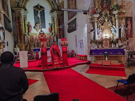A korábbi években a Szűzanya tiszteletére végzett szertartásokon vehettünk részt, kapcsolódva a május és október havi, római katolikus Mária- tisztelethez, ún. paraklisz és akathisztosz imádságon, idén egy nagyböjti szertartást, az ún. előszenteltek liturgiáját végezte Antal atya.